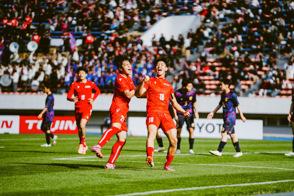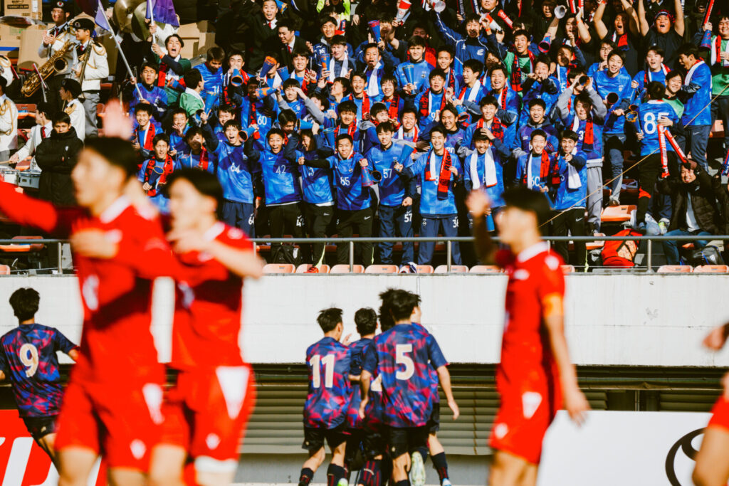 ともに部員数400人を超える強豪校同士の一戦は、ピッチに立てなかった選手たちの声援に包まれていた。